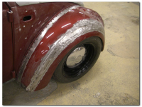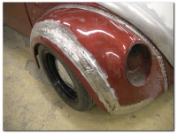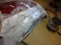 100CASIO_006 (3).jpg (97.88 KB. 800x600 - vist 446 ganger.) Forsatt en del jobb med bakskjermene. Venter på noen nye bakfelger så siste del av tilpassinger blir gjort når jeg har fått dem. Fått tinna og sparkla forskjermene synes sjøl det begynner å se bra ut. Litt småpuss igjen før de er klare for grunning.