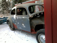 Egentlig skjønte jeg ikke helt hvordan jeg skal måle  Tvilende men har vert litt i garasjen og fått løsnet bremsene og fått i luft i dekkene, så nå ruller den Osteaktig og har også ryddet ut det som lå inni bilen og fått bort noe av støvet på bunnplata, den så egentlig ganske bra ut, det er en del sveising i karroseriet men ikke alt for mye.