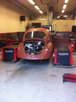 Vil påstå at hjulkontroll er den viktigste, mest oversette, justeringen som bør gjøres på en dragrace bil. Særlig med slicks. Bakhjula skal ha null grader spissing, dvs stå helt rett.