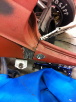 Så har jeg frisert bakplata slik at den går klar av grenrøret, og laget fester for motorlokket.