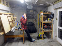 Har fått noen timer i verkstedet i dag, der jeg har satt opp resten av platene på skilleveggen. Nå gjestår listverk, sparkling, maling og litt annet småpuss.