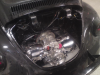 Montert nytt 4-tune racing grenrør fra EMPI . Det var ikke bare bare siden dekslene under støtstangrøra ble i veien... Fram med kutteskive for litt modifisering.