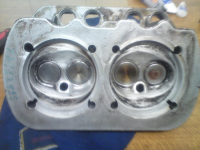 Den ene halvdel er nå ferdig montert med silikonpasta mellom blokk og sylindre, kobberring mellom sylindre og topp med 1mm i vendehøyde.