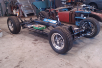 Oppdatering. Bunnplate mer eller mindre klar. -Kerscher skivebremser foran og bak.- Skiver maskinert om til Chevy boltmønster.