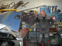 Da er bilen på plass hos lakkereren   Gliser