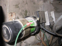 Bilde en viser to stk sorte kabler som kommer ut av boksen som er åpen i bakgrunnen... hvor skal disse kobles til? coilen?