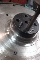 Nå håper jeg du har borret med "under size" og er forberedt på å brotsje opp til 8mm. Ser bra ut dette her  Hæ? undersize? Nei her durte eg på med 8mm så svinghjulet glir rett på uten makt... Neida, boret med 7.9 mm brotsjet så ut til 8mm og fikk en meget bra presspasning.