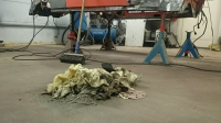 Av med begge skjermene, av med bakplate, forgassere, eksosanlegg, bakre kjøleblekk.