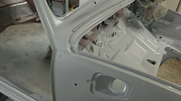 Førersiden er ny plate av beste kvalitet, mens på passasjersiden er det kun noen småbiter som skal byttes så det nøyet vi oss med litt mer slurven plate.