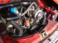 1600 dobbelport motor, turnkey, med eksos, varmepotter og alt i hop. Eksos fremstår som hel og pen, bilen har gått i Nevada der det er tørt og fint.