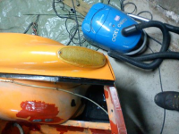 DSC00310.JPG (94.64 KB. 512x384 - vist 279 ganger.) Jeg la ny flytende pakning under panseret. Den er garantert vanntett, og suger ikke til seg fuktighet for så å ligge å gnisse.
