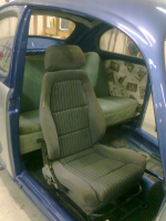 Denne trur jeg nok blir så uorginal som det går ann å få blitt, om jeg får bestemme alt selv GladGlad Men får se hva som dukker opp.  Nå mangler jeg setene både foran og bak , så får vi se hva man får kjøpt etterhvert. Foreløpig blir det satt inn seter med høy rygg foran, og det slitte som fulgte med bak Glad Interiøret stresser vi ikke med. Nå er den hel og pen utenpå, så tar vi resten som det kommer Glad