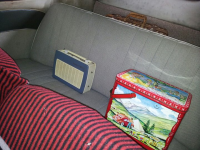 Det ble en radio type Kurèr, gammel primus, liten koffert til å ha verktøy i, 2 gamle oljekanner, og en gammel bensin reservekanne.. Det var vel det hele tenker jeg.. Glad