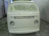 Da er farge på bilen bestemt og det er lakkert noen deler. Skyvedør , motorluke og fangere har fargen som ble helt