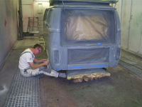 Da har bilen fått en farge. men først ble det lagt på syregrunning.