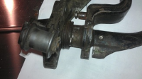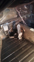Var litt krøkkete for meg å få tatt et skikkelig bilde til deg, så jeg tegnet inn delen på ditt bilde. Den tykkeste streken illustrerer den delen av vinkelen som står opp fra gulvet, det er den som bremsepedalen skal stoppe imot.  Skruehodet på bilde ditt skal holde denne delen fast og hullet er avlangt for å kunne justere pedalen.