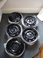 Har søkt litt på internet og fant ut at det går å få tak i stålfelger som kunne erstatte de originale bare at de er med 5 bolter (porsche).... disse er i 4,5 og 5,5 x15 og ET 42 - perfect!