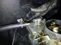 .. stoppet med en gang, slukket motoren, og åpnet bak.. der var slangen fra bensinpumpa hoppet av på forgasseren.. ikke bare slangen,men hele stussen som dere ser på bildet..