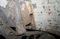 Ja jeg mener det samme!! Selvom jeg har kuttet litt på dette bildet var hullet STORT! går inn bak selve festet på begge sider! Ja den sveisen du ser nederst der er det ikke jeg som har sveist, ser ut som platen er lagt utenpå så vil ha av for å kikke bak!(se bilde med rennen! Hjørnet på bunnplaten der, er ikke akkurat skikkelig arbeid dette)