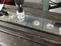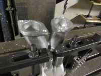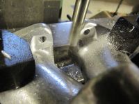 I tillegg måtte jeg "slanke ned" på undersiden av bolthullene siden plenumkammerne må skrus fast fra undersiden. De gjengede hullene ble også boret ut til rundt 8mm. Fikk samtidig målt ut boltmønsteret relativt til de 49mm store hullene, slik at baseplater for plenumkammerne enkelt kunne lages senere.