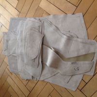 Kua er partert! Det er 8 skinn biter pluss stoffputa i midten på hvert sete pluss 11 skinn pluss stoff på hver rygg. Pga svak bøtteform og litt sidestøtte i korsryggen har det blitt flere biter enn originalt [ Vedlegg ]