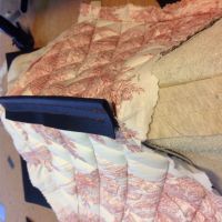 Her er sidefeltene oppå seteputa, samt skjørtet rundt (fremkant og sidene)ferdig.