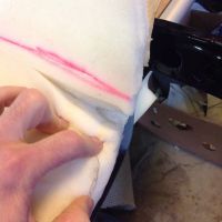Takk for ros, karer! Etter ca 15 timer med sying, prøving og ikke minst tenking er den ene ryggtrekket klart til montering. Får se om det blir noe ferdig før det bærer til fjells. Nakkeputa er bitchy! Og siden jeg har sidestøtte i korsryggen må trekket festes inn i skumgummien. Så vanlig vrenging nedover (som originalt) er ikke mulig. Håndsøm ned begge sider for å forene front og bakside blir løsningen. Bilder kommer... Tidvis mye som skal gjennom maskinen...4 paneler skal fusjonere øverst i nakkeputa