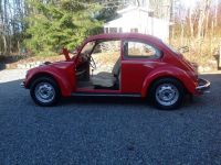 "Proffutstyret" ble to murersnorer spent opp på to metallrør foran og bak bobla som kunne skli på tvers. Samme avstand mellom snorene frem og bak-samme avstand fra snor til hvert av fremhjula og samme avstand fra snor til hvert av bakhjula. (Litt forskjellig sporvidde frem og bak). Her kom rørene som sklei i krokene til nytte. Ble mye finjustering før alle avstander stemte. Så måle fra snora inn til frem- og bakkant på felgene. Viste seg at min "justering" når jeg skrudde det i hop var litt ute  Ca 4 mm toe out!! på hver av bakhjula og 10 og 12 mm toe inn fremme. Dette resulterte i at bilen "småhoppet" litt på veien- antakelig pga toe out bak- og vima rundt som en hodeløs høne. Var veldig glad at Sakkyndige ikke ville prøve'n  Satt opp med nøytral bak (sto vel 5 gradminutter positiv i boka, men det er så godt som itt'no). Foran sto det 30 gradminutter i boka (altså en halv grad). Felgdiam er 41 cm. Radius 20.5 ganger 2 ganger pi ble 128 cm. Delt på 360 grader er 3.57 mm. En halv grad blei derfor 1.79 mm. Skrudde til jeg hadde 1.5 mm på ene sida og 2 mm på den andre med rattet i senter, og så meg fornøyd med snittet. Resultatet var at jeg nå kan slippe rattet flere hundre meter, og småhoppinga er borte. Camber har jeg ikke sjekket ennå, men ble satt opp med merkene rett frem ihht boka når jeg monterte forstillinga for leeenge siden. Ting faller på plass. Selv tankmåleren har kommet til seg selv. Litt dårlig jord pga ny lakk og gummilist mellom tank og kaross, så jeg lagde en ledning fra en av skruene til senderen og bort til jord for hovedlyset. Plutselig våkna'n. Merker at jeg stadig vil ut å kjøre. Guttungen i bursdag-bobla. En datter til skolen-bobla  Koser meg glugg ihjel. Sitter faktisk veldig godt i setene også. Blir en bra sommer uansett vær