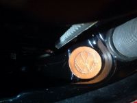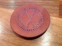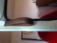 Siden jeg har "oppgradert" til 1600 med større gasser ble det annet (og eldre?) luftfilter, uten det papp-røret ned for å hente varmluft. Det var det jeg fant! Følgelig hadde jeg et ganske stort hull for mye. For stort for noen grommet i mitt sortiment! Så jeg sydde en i lær. Det ble også en test i hvor mye Pfaff'en klarer. To lag selvsagt ,til sammen 7.5 mm griselær (ganske gammel og tørr). Det gikk, selv om han protesterte litt