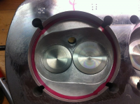 Var ikke akkurat lange distansen mellom innsug-ventil og eksosventil her ... Men det gjør ikke noe, da er det ingen plass til sprekk  Håper det gir resultater med større ventiler  40mm