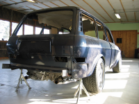 Etterhvert kom jeg borti en kar på Hamar som hadde et prosjekt som hadde strandet. Bilen var tatt ut av trafikk i -84. Dvs den hadde gått på veien i bare 10 år så den var godt bevart med tanke på rust. Det var gjort masse jobb med forsterkninger rundt motoroppheng og de fremre innfestningene til Porsche kasse var på plass. Både til 915 og 930 og det var montert bremser fra 911. Karroseriet var utrolig pent og ferdig lakkert i en mørk blå 3 sjikt Porsche farge.