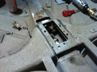 Girspak #6 kopi.JPG (66.88 KB. 648x484 - vist 719 ganger.) Synes jeg måtte lage en plate som fyller igjen hullet slik at teppet ikke henger i luften foran spaken og dessuten tenkte jeg på at man svekker en kanal som sikkert har en funksjon på stivheten