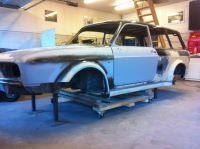Det kan kanskje virke som om det går veldig treigt. Vel, på en måte gjør det det pga lakkering. Han som holder på med grunnarbeid og lakkering har av alle ting blitt sagt opp der han jobber og det satt en stopper i lang tid til vi fikk lagt en plan. Han fikk ikke lov å bruke fritiden sin på denne bilen selv om vi hadde en avtale med eieren av lakkverkstedet. Stakkars fyr egentlig. Verdens hyggeligste kar men han har sliti et par år der han har mistrives på jobb og ble egentlig litt glad det endte slik selv om han ikke har lov til å bli sagt opp pga arbeidgiveren har fått tak i billigere arbeidskraft. Det er jo strengt forbudt, men han ville ikke forfølge saken. Han fikk en ok deal og i tillegg fikk han lov å låne lakkboksen for å lakkere bilen min. Han hadde tenkt å si opp for lenge men vil vente til bilen min var ferdig  Han har gledet seg til å fullføre et prosjekt der han kan få brukt all kunnskap og ikke hele tiden få høre. Nå må du bli ferdig. Kunden venter. Han har kjøpt seg slipeutsyr med avsug og står nå i min garasje å gjør unna alt grunnarbeid. Helt utrolig hvor effektiv det er. Blir nesten ikke støv av dette. Det er først siste uka det har blitt fortgang på dette da han jobber på fulltid med dette prosjektet. Tidligere har han tatt det innimellom. Jeg har ikke råd til å sette det bort på fulltid til et lakkverksted. Estimert pris da er på et sted mellom 80-100 tusen. Om jeg har en tidsplan? Hehe Jo, det har jeg hatt lenge  Men har desverre blit utsatt og utsatt pga lakkering men nå endelig er det lys i enden av tunellen. Her tildigere i vår ble jeg så lei at jeg ikke orket å tenke på denne bilen når jeg var på jobb at jeg ikke orket og ut i garasjen når jeg kom hjem. Men dagen etter syntes jeg at jeg måtte ta en titt. Det var ikke mer som skulle til. Det våknet til liv igjen med en gang  Mulig bilen blir lakkert neste uke. Har ikke staus ennå. Kommer hjem i morgen kveld men har en kompis (t3fast4) som sier det skjer store fremskritt  Og jeg har en jobb som gjør at jeg er borte hjemmefra i ukeshvis, men kan kan fortelle at hver eneste dag jeg har fri bruker jeg på bilen selv om jeg har holdt på med mye småplukk pga bilen er ferdig og venter på lakk. Har to uker fri om en ukes tid og 4 uker ferie i juli og har gitt beskjed hjemme at alt av fri og ferie går med til bilen for å få den på veien så hus/hjem og ferietur står på vent i sommer  Bilen SKAL bli ferdig. Hadde et mål om å rekke SCC, men kan aldri tenke meg at jeg rekker det. Et kjørbart objekt ja. Ferdig utenpå, men langt fra helt ferdig og komme med noe halvferdige greier er ikke noe gøy. Mye ekstra elektriskt som skal legges opp.Skal lage nytt el. nett for alt ekstra. Bilens el nett blir brukt kun til drift av lys og styring/kontroll av motor. Men planen er å rekke å bli ferdig til mars da jeg har blitt invitert til en messe i Stuttgart som heter Retro Classic. Det kan jeg vel si er det endelig målet. Er såpass langt fram at den bør jeg kunne rekke fint. Har også som nevt en kompis (t3saft4) som har en utrolig fin mørk blå 412 coupe som blir dødsrå. Lav med 8.5 og 10x17 på orginalt karosseri som vi holder på med litt parallelt her. Må jo ha noe å holde på med  Så hvis du leser dette Eivind så MÅ du få igang en prosjekt tråd på bilen din