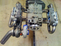 Har sett igjennom alle 32 sidene med "show us your turbo" pics på shoptalksforum, og kun en av dem har denne løsningen med turbo ved siden av girkassa. Jeg er usikker på om dette er en bedre løsning mht varme. Med CB oppsettet er det to varme rør under sylindrene, turboen er bak motoren slik at motoren er etter motoren i luftstrømmen som blir når man kjører fremover. Dvs frisk luft kjøler sylindrene (for de kjøles vel med luftstrøm også, ikke bare luften fra viften?) Hvis turboen skal være foran, varmer den jo opp luftstrømmen som går forbi motoren..  Dette har kanskje ikke noe å si i det hele tatt, men jeg synes det er rart at så få velger denne løsningen. De som gjør det kapper i stykker hele bakseteregionen og plasserer turboen rett foran vifteinnsuget og det er i allefall ikke så gjennomtenkt. Er det noen her på forumet som har testet ut denne løsningen med å ha turbo ved girkassa?
