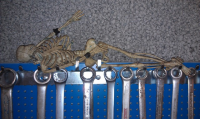 Denne fant jeg inni bilen når jeg ryddet. Den har vært i en eller annen bil helt siden første bil. Hodet har falt av nå, så han får hvile med å passe på verktøytavlen Glad
