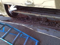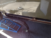 Fikk faktisk jobbet litt i det fine været i dag, startet på kanalen på venstre side (den på høyre side er allerede fjernet av rapidspeed  ) Fant ut at jeg måtte ut med resten av platen nederst, var for mye rust innenfor. Kuttet først med vinkelsliperen og borret punktene, først bakerste del: