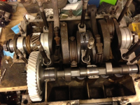 Skal selvsagt benytte anledningen til å skifte en del ting samtidig. Tenkte å slenge inn en 110 Engle kam pluss skifte ut alle lagre og drev. Tok ca 1 1/2 time å ta den fra hverandre. Fant ikke noe galt noe sted Rekker tunge Ingen ting som så ut til å mangle noen deler, så jeg aner ikke hvor delene kommer fra. Kan jo ha vært noe som har falt inn ved en overhaling en gang.