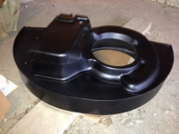 Som dere ser måtte jeg skjære ut litt på viftehuset for å få plass til den bredere oljekjøleren. Skal fabrikere og sveise på ny del i morgen.