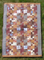 Teppet er ubrukt. Quiltet med bomullsvatt, og bakstykke i bomull.