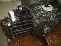 Begynte også å pusse ned noe kjøledeksler. Viftehuset tror jeg forblir som det er, kun litt polering. Resten av dekslene er smårustete, så dette blir pusset ned og lakkert med svart varmelakk.