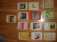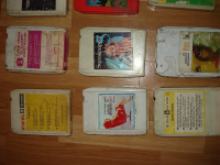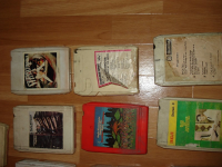 Har en 8-track med 12 kassetter+en rensekassett liggende.