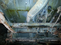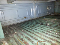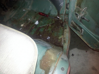 Her så det jo veldig fint ut, forrige eier fortalte at bilen var brukt til å kjøre ut olje en gang i tiden, og det vises baki under setene:
