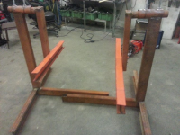 Siden det er lenge siden siste oppdatering så jeg får vise livstegn igjen. Jeg har hatt problemer med ryggen og en fot (fikk konstantert prolaps) så det har det vært lite aktivitet i garasjen en stund, det tar seg opp igjen nå, ryggen er til å leve med igjen. Har for det meste holdt på med vuggen, tverrstålene jeg brukte ble for svake så jeg måtte finne noe sterkere, heldigvis kom det fram noe når snøen forsvant  Nesten ferdig vugge til framparten, mangler bare litt avstiving: