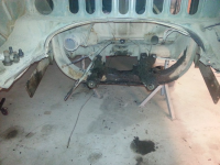 Vugga er ikke ferdig nei, det kommer avstivninger også. Jeg driver og gjør klar bilen for å kunne gjøre ferdig vugga helt, de siste tilpasningene må gjøres på plass. Med god hjelp fra TEH i dag er motoren tatt ut og bilen er opp på bukker. Skal ta ut girkasse og alt resten bak + forstillingen i løpet av uka. Bilder kommer i morra.