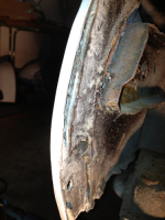 Etter å ha pusset ned innerskjermene til stålet dukker det opp mer rust.