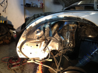 Da har jeg fått sveiset ferdig rusthull foran;tusen takk til Ruggen for lån av sveis Gliser