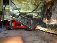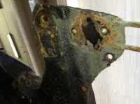 du får opna opp igjen å inspisera, ser ikkje ut som da er so vanskelig sånn som da er no:) skal du ha fullgod forsikring på att røyret sitter skaplig i til langt fram i fjern framtid so sveiser du forsterkning framme i enden, ca rett bak girspaken + lenger bak mot enden av golvplata.