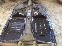 Da bunnplata er ferdig rustsveiset er turen kommet til karosseriet,som jo er grunnen til at bilen er delt.