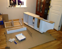 Da er jeg klar for å male hyller og sider inni hyller og skap, og trekke frontene og utsidene med skai.