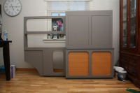 Da er greiene kommet på plass i bussen.. Får si meg rimelig fornøyd så langt.. Kansje gråfargen på rulledørene ble litt i lyseste laget, men det får bli slik.. ellers må jeg få blandet meg noe spraylakk som ligner med på de grågrønne panelene.. Skal innom en campingvogn forhandler imårra å se etter noen dørlåser til dørene oppe. LED lys er bestillt på i-bay, så vil det vise seg om det er no bra greier.. tenkte lys i øverste hylle til venstre, og de to nede med rulledører..